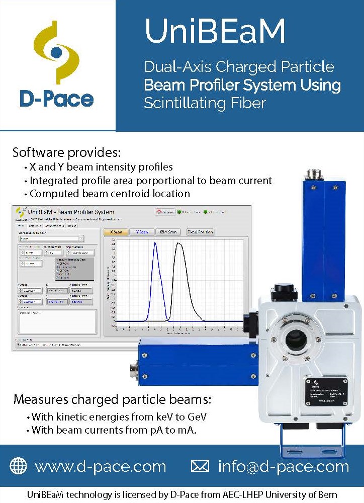 D-Pace has placed a 1/2 page print advertisment for the UniBEaM25 particle beam profiling system in the November 2018 edition of the CERN Courier.