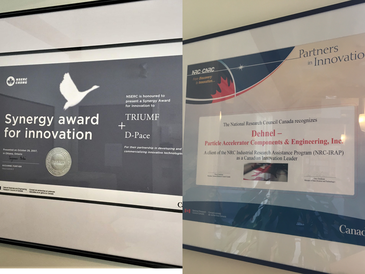 In 2007, the Natural Sciences and Engineering Research Council of Canada (NSERC) presented D-Pace and TRIUMF with the Synergy Award for the development of products and services for cyclotrons and other particle accelerators.